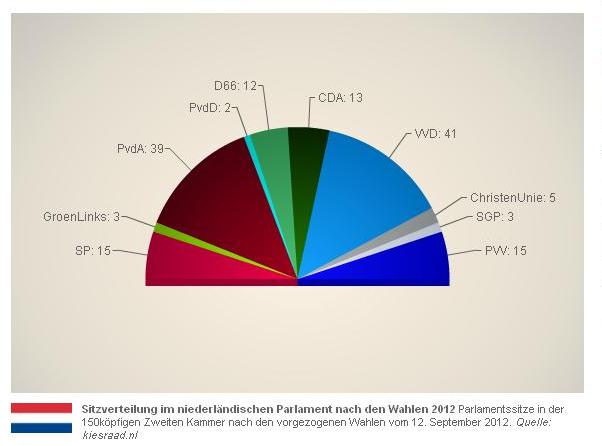 Die grossen Sieger der Wahlen sind einerseits die wirtschaftsliberale VVD von Ministerpräsident Mark Rutte. Sein Partei gewann gemäss provisorischen Angaben 10 Sitze und ist mit 41 Sitzen die stärkste Partei in der Zweiten Kammer. Andererseits legten auch die Sozialdemokraten um 9 Sitze zu und kommen neu auf 39 Sitze. Beide Parteien hatte sich immer klar für die EU-Mitgliedschaft und für den EURO ausgesprochen. Dieses klare Bekenntnis wurde jetzt von der niederländischen Wahlbevölkerung belohnt. Weiter legte mit den sozialliberalen Demokraten 66 eine weitere pro-europäischen Partei zu.