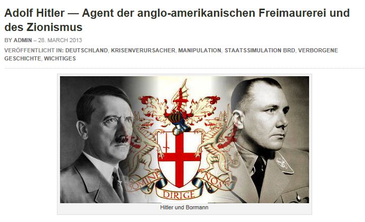 Hitler soll ein Agent der amerikanischen und britischen Freimaurer und des Zionismus gewesen sein. Verschwörungstheorie auf www.politaia.org