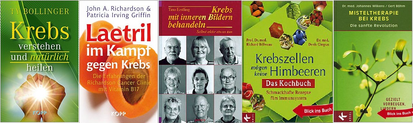 Aprikosen, Himbeeren, Misteln und Mediation sollen Krebs heilen. Neben dutzenden von Büchern von Impfgegnern bietet der Kopp-Verlag (www.kopp-verlag.de) auch zahlreich Bücher über angebliche Krebs-Heilmethoden an.