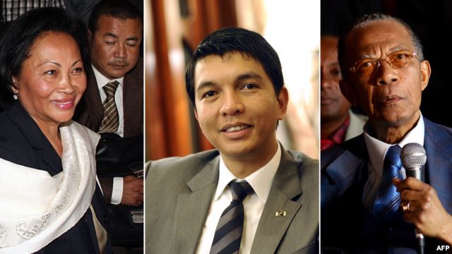 Die drei ausgeschlossenen Kandidaten Lalao Ravalomananana, Gattin des Ex-Präsidenenten Marc Ravalomanana, Übergangspräsident Andry Rajoelina und Ex-Diktator Didier Ratsiraka.