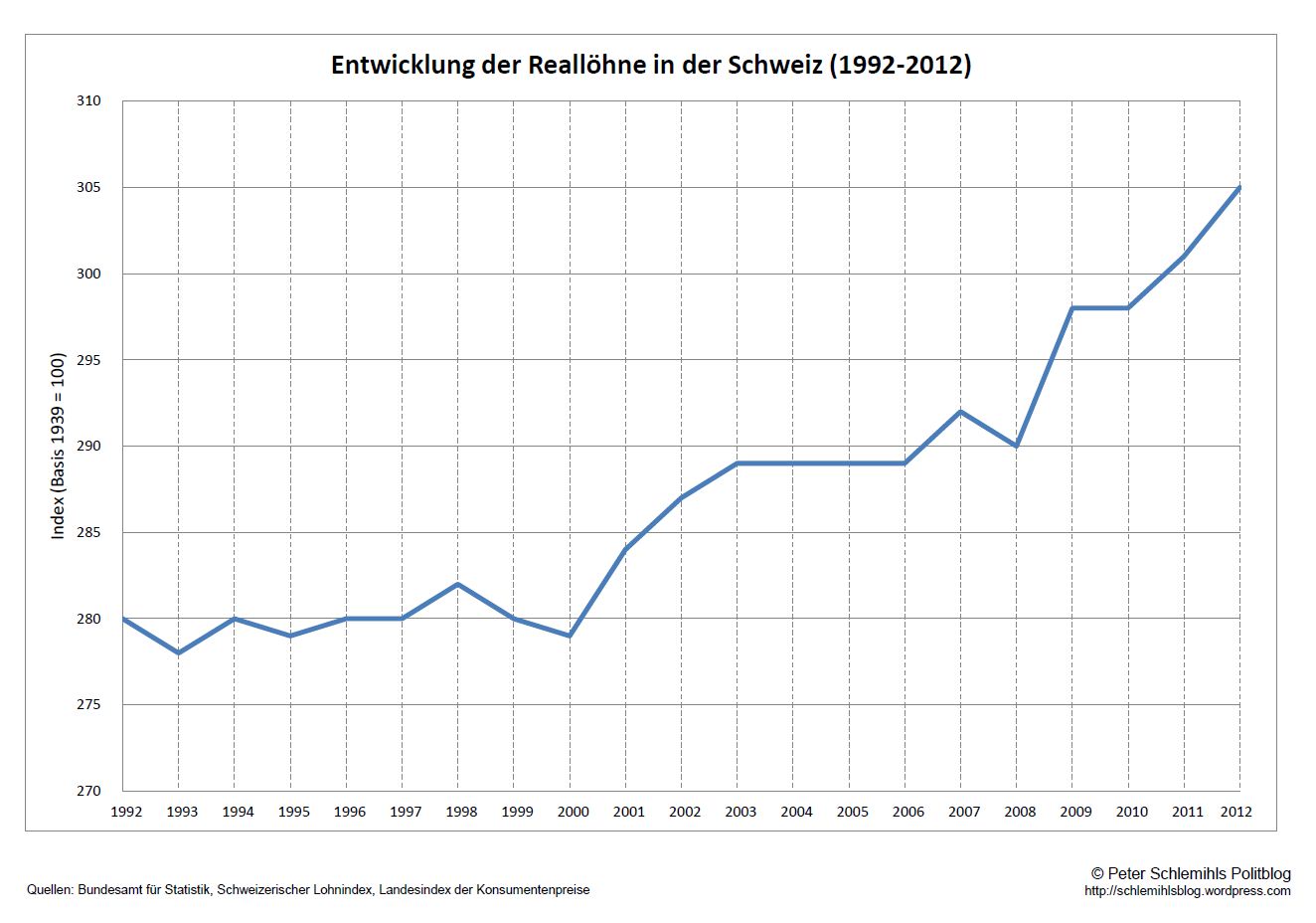 1. […] Reallöhne so hoch wie nie zuvor In den letzten Monaten war in der politischen Diskussion sehr viel von angeblichem Lohndumping zu hören und zu lesen. Vor der Abstimmung zur Masseneinwanderungsinitiative war es vor allem die SVP, die von angeblichem Lohndumping als Folge der Personenfreizügigkeit sprach (interessanterweise scheint dieses Problem für die SVP im Vorfeld der Mindestlohninitiative plötzlich nicht mehr zu existieren). Heute sind es vor allem die SP, die Grünen und die Gewerkschaften, die von Lohndumping sprechen. Die Realität sieht indes anders aus: Noch nie hat man in der Schweiz real so viel verdient wie heute. Die entsprechenen Erläuterungen in meinem Artikel im Vorfeld der Masseneinwanderungsinitiative. […]