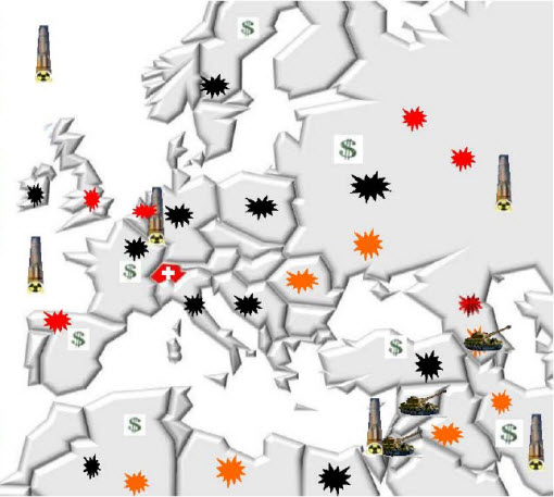 Randbemerkung: Auf der „Gefahrenkarte“ von Armeechef Blattmann von 2010 ist die Ukraine gar nicht aufgeführt, da es sich um eine Karte mit den Landesgrenzen vor 1990 handelt, also noch mit der Sowjetunion und Ex-Jugoslawien. Auch diesbezüglich scheint der Armeechef den Anschluss an die heutige Realität nicht ganz geschafft zu haben…