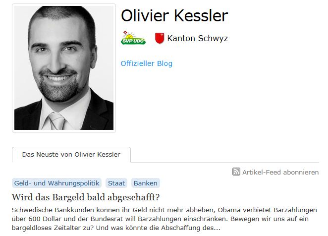 Als neuer Nachfolger von Ulrich Schlüer soll der HSG-Absolvent und SVP-Lokalpolitiker Olivier Kessler aufgebaut werden. Kessler fällt einerseits durch seine islamfeindlichen Aussagen auf. Neben seinen islamfeindlichen Artikeln in der Schweizerzeit teilt er auf Facebook Propaganda der rechtsextremen und islamfeindlichen „English Defense League“. Andererseits verbreitet Kessler auch Verschwörungstheorien in den Bereichen Gold- und Währungspolitik. Unter anderem behauptet Kessler in einem Artikel auf politnetz.ch, dass schwedische Bankkunden ihr Geld nicht mehr abheben könnten oder Obama Barzahlungen über 600 Dollar verbiete. Kessler ist dabei offensichtlich auf eine Falschmeldung der Verschwörungstheoretikerseite „Deutsche Wirtschaftsnachrichten“ hereingefallen.