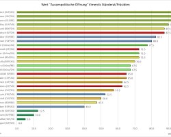 Die Grünliberalen setzen sich mit Abstand am stärksten für eine aussenpolitische Öffnung der Schweiz ein. Bei allen anderen Parteien gibt …